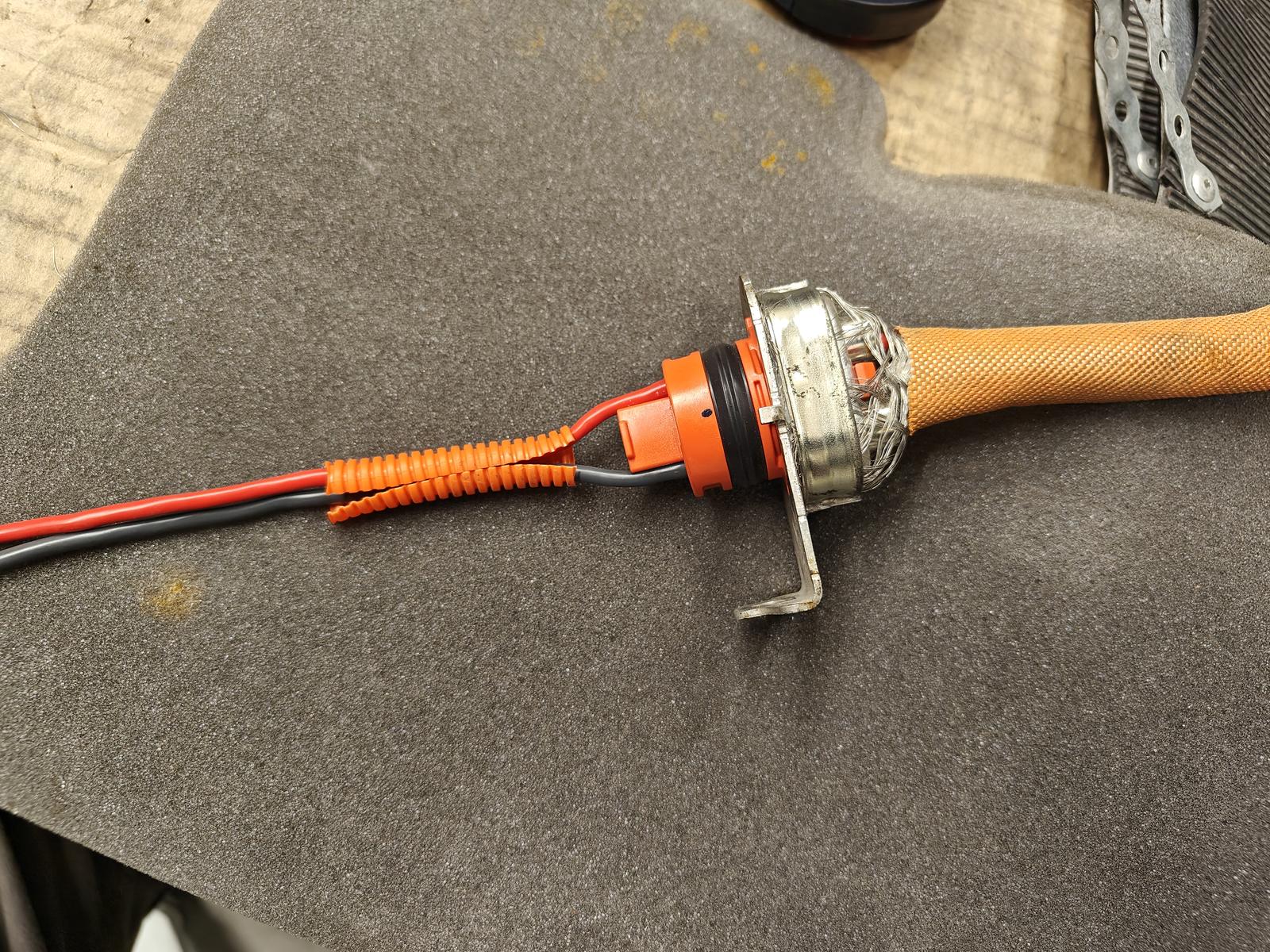 Viime viikolla yhdistelin kahdesta kaapelista yhden, eli Leafin ilmastoinnin kompuran piuhasta läpivientiosa löysi uuden kodin Volkkarin letkulämppärin piuhasta.