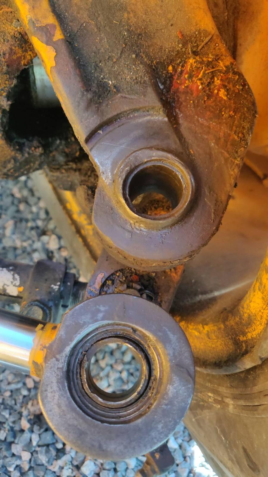 Sattumalta huomasin, että ohjaussylinterin ja ohjausvarren liitos päässyt löysäksi ja ohjausvarren reikä kulunut pahasti soikeaksi. Rupes heti pelottamaan, että vääntää ohjausvarren pään kaulan paskaksi.