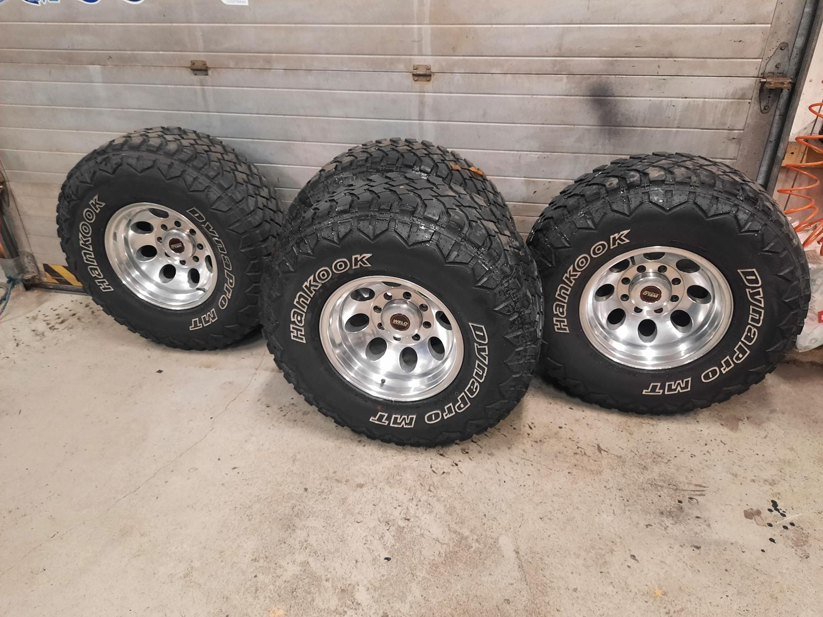 16x10 8x165 vanteet renkaillaMyydään Erittäin hyväkuntoiset aidot kiillotetut Mickey Thompsonit 16x10, ET -25,4Ei ole naarmuja tai muutakaan ihmeellistä, ei täristä ja hyvä ajaa maantielläkin. Päällä ok-kuntoinen Hankookit 315/75r16 m+s, pintaa renkaasta riippuen 6-8mm. Mukaan saa 8kpl keskikuppeja ja pultattavat 1,5" spacerit taakse(kuvassa päällekäin), niin istuu hienosti ainakin 2gen dodge ramiin levikkeiden kanssa. Alkuperäiset korkeat M/T -keskikupit ja matalat Weld Racingin kupit. Matalat kupit ei sovi jos ei käytä takana spacereita. Hinta tippuu 100€ jos ei ole tarvetta weldin kupeille eikä spacereille. Eteen vaatii silti levikkeet, takana ehkei? Paimiosta löytyy. Myydään |