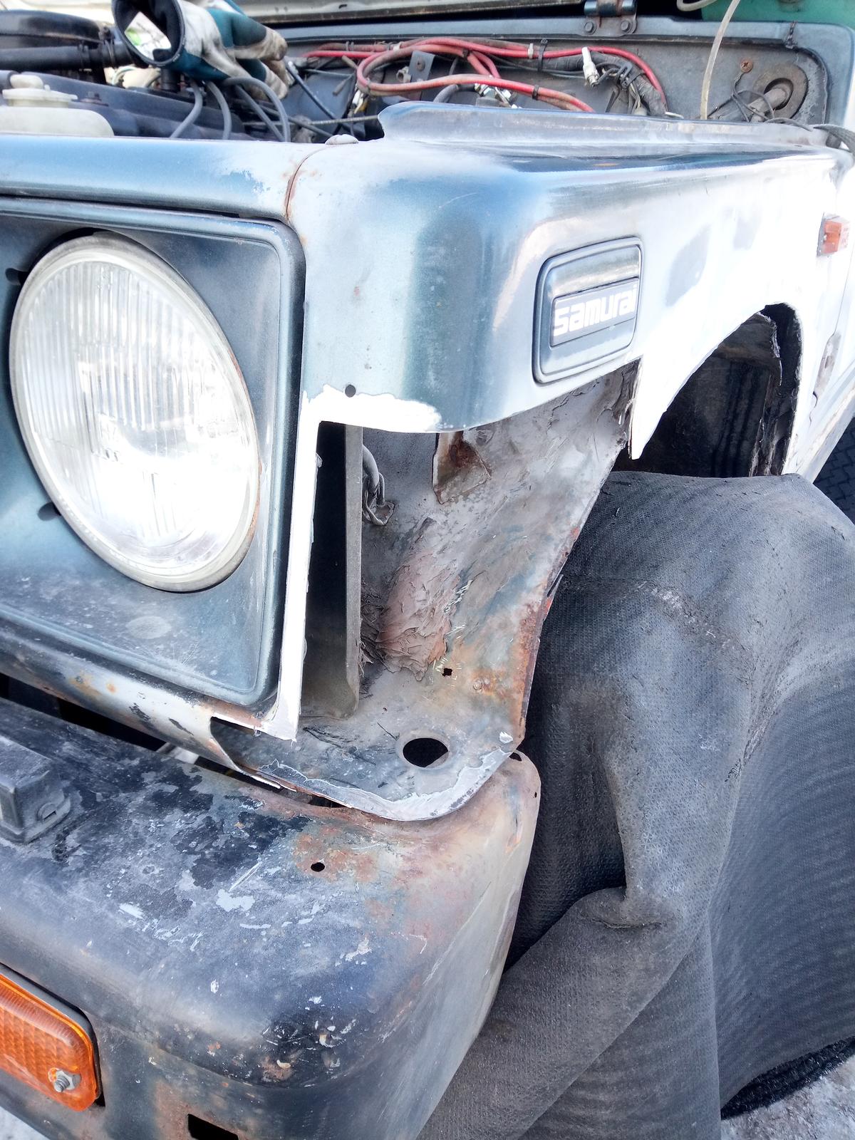 Kaikki lokasuojat joutuu tekeen uudet, molemmat helmat, takakontin lattia kokonaan uusiksi ja kuskin ja pelkääjän lattian nurkat saa uutta peltiä. Alotin hommat tekemällä kuskin puolen ensiksi että sais piettyä auton mahollisimman paljon kuitenki ajossa. Huoltovihkossa oli vuelta 2015 maininta että kuskin puolen lokarit ja helma korjattu. Olihan ne. Ruosteisen helman päälle oli popniiteillä niitattu kantattu kattopellin soiro Samoten takatilan lattian reiät oli paikattu alumiinipellin paloilla neljästä nurkasta niittaamalla No nyt on kuskin puoli oven läpikäyntiä vaille valmis. Saa katsuri potkia helmoja ja lokareita rauhassa. Helmapalkin tehin 80x80x4 palkista. Ainaki kestää auton elin iän