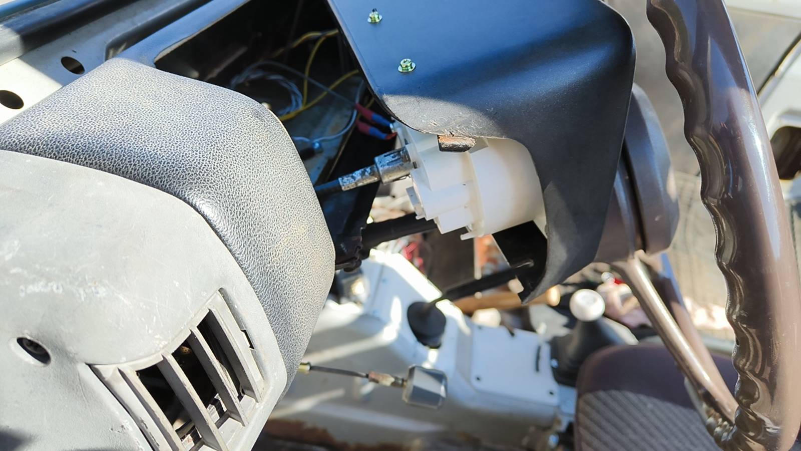 Tässä ensimmäinen! Sattuipa sopivasti. Luonto (ruoste) tehnyt reijän juuri sopivaan paikkaan mittarinvaijeria varten. ![]() |