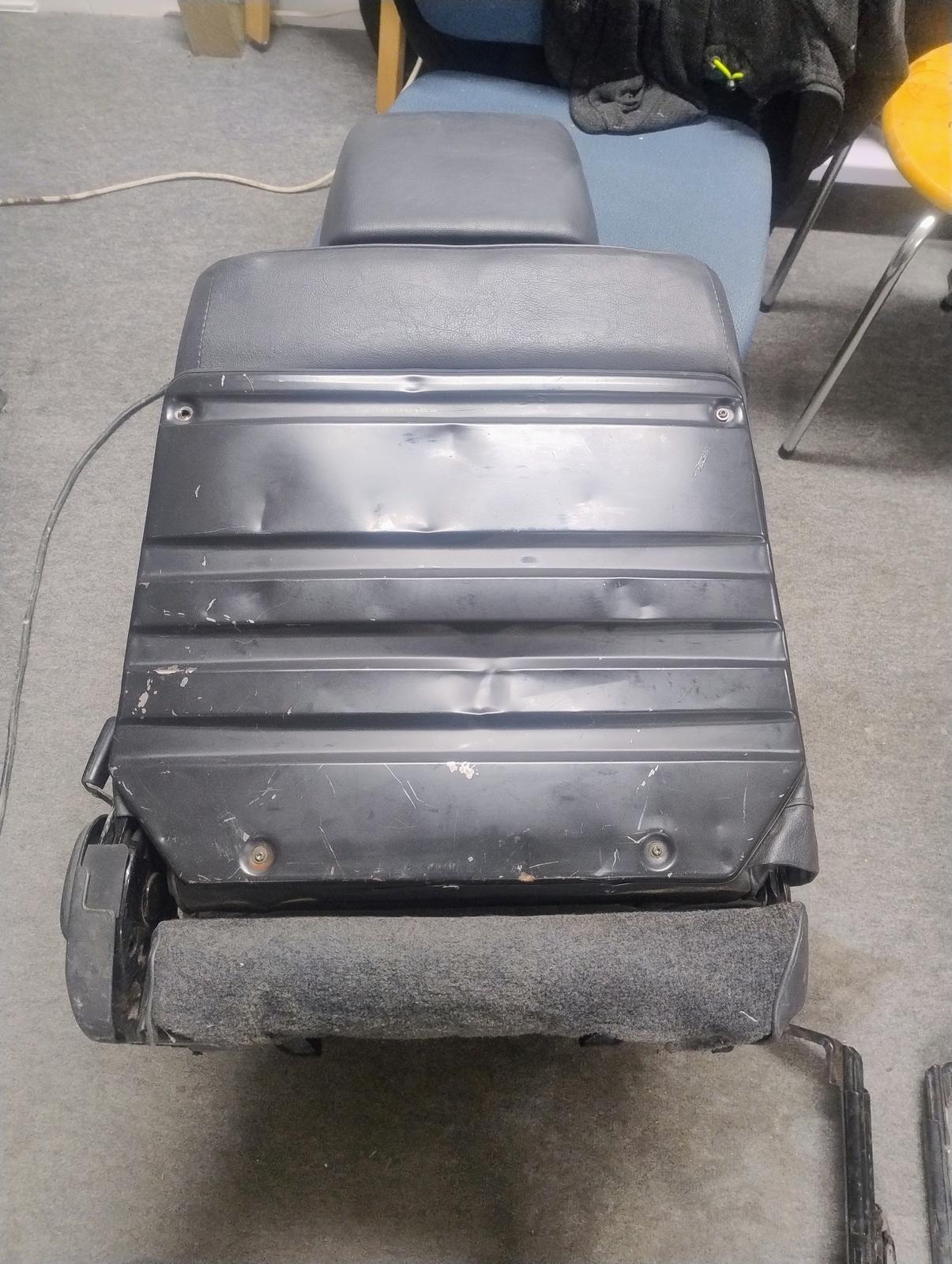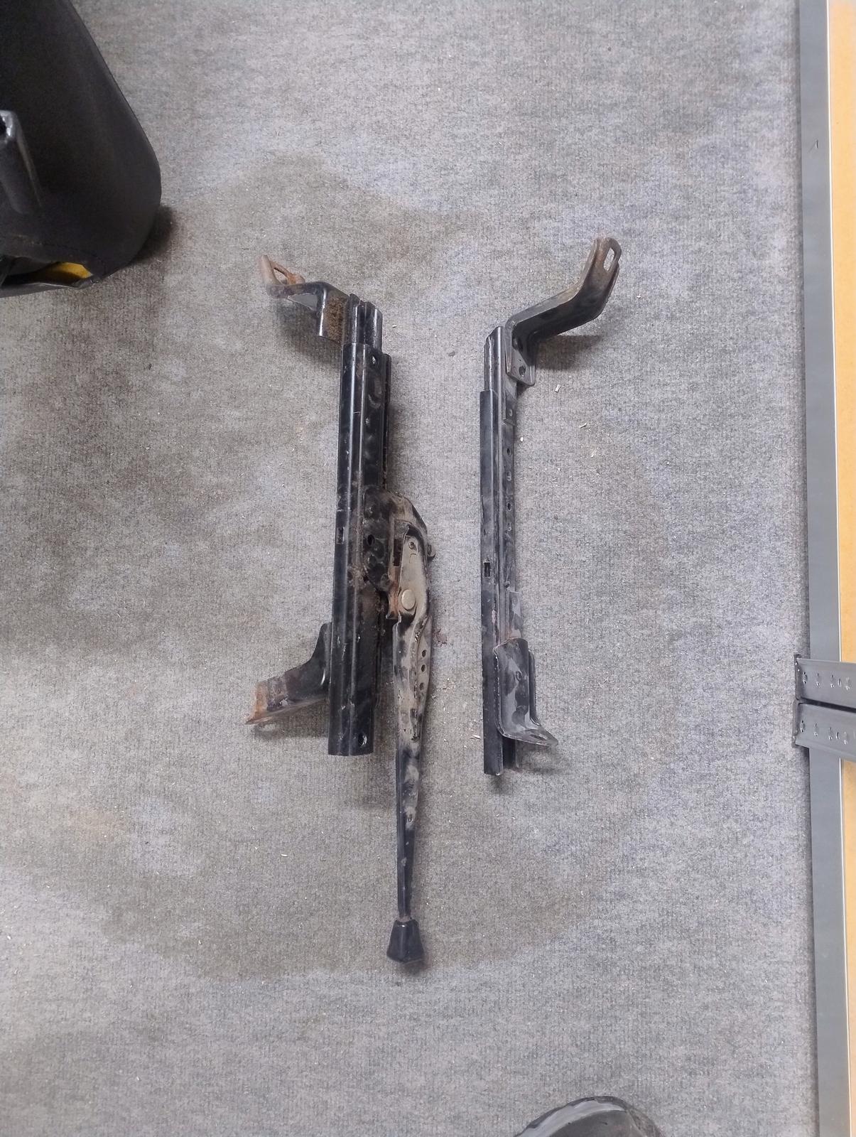 Vaihdoin kahdenistuttavan ja tuommoinen olis ylimääräisenä. Kuvan kiskotkin löytyi mutta nuo taitaa olla Hj:stä kun reijät ei passaa suoraan. Yksi repeämä näyttäisi olevan ja tupakin jälkikin mutta kyllä tuolla ainakin kaveri istui tyytyväisenä 1500km, ei tosin selvinpäin..