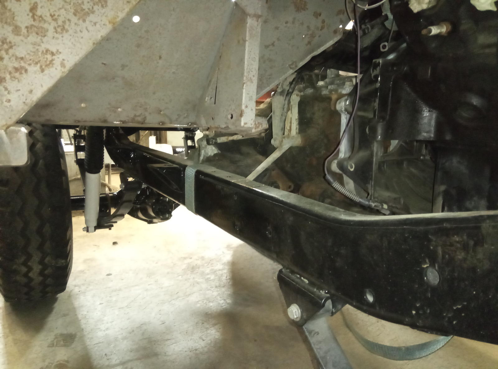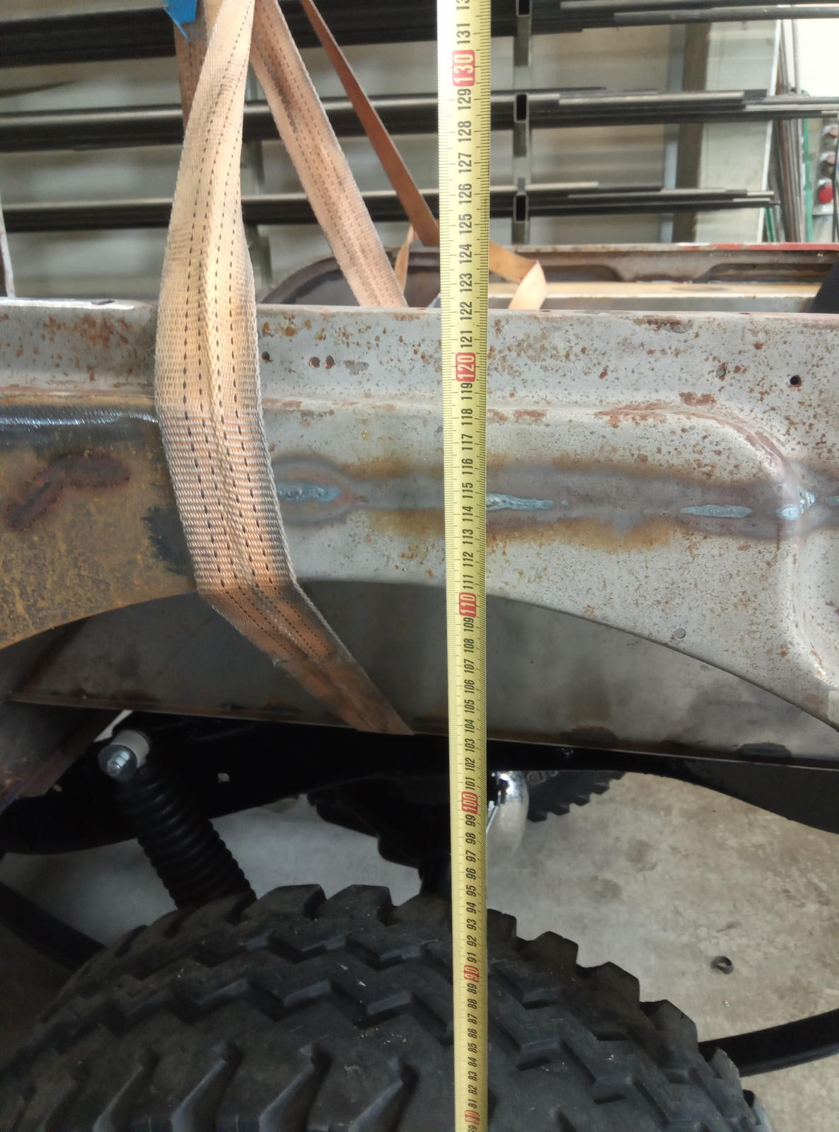 Auto on tällä hetkellä todella korkea ja alusta todella jäykkä. Alusta ei käytännössä laskenut alaspäin vaikka koppa ja tekniikka on kyydissä Pitää ottaa lateja pois ja toivoo että uusien jousien jäykkyys häviää ajaessa. Takasivulaita on kuvassa noin kymmenen tuumaa korkeammalla kuin alkuperäinen... Hiukan joutuu madaltaa kun pitäis isompaa pyörääkin saada alle.
