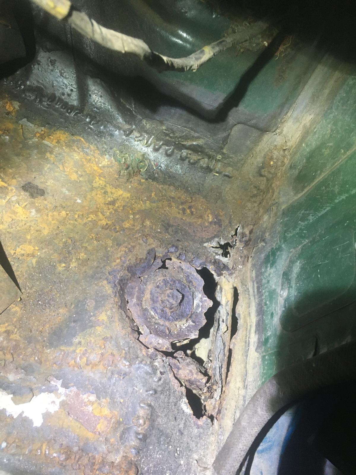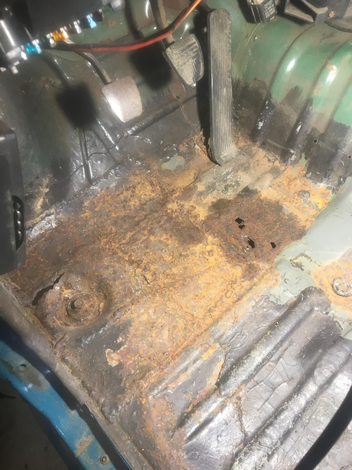 no, alunperin "hyvistä" pelleistä löytyi kuin löytyikin reikiä ja vanhoja pakkeleita. Runko oli onneksi ruostesuojattu ja sitämyötä kunnossa. Lokasuojissa oli ruostetta perinteisissä paikoissa ja hytissä niin kuskin kuin pelkääjänkin jalkatilassa. Hytissä oli myös Hilun edellisen kerran pysäköineeltä jäänyt homma kesken, siksi ammottava aukko takaosassa valmiina. |