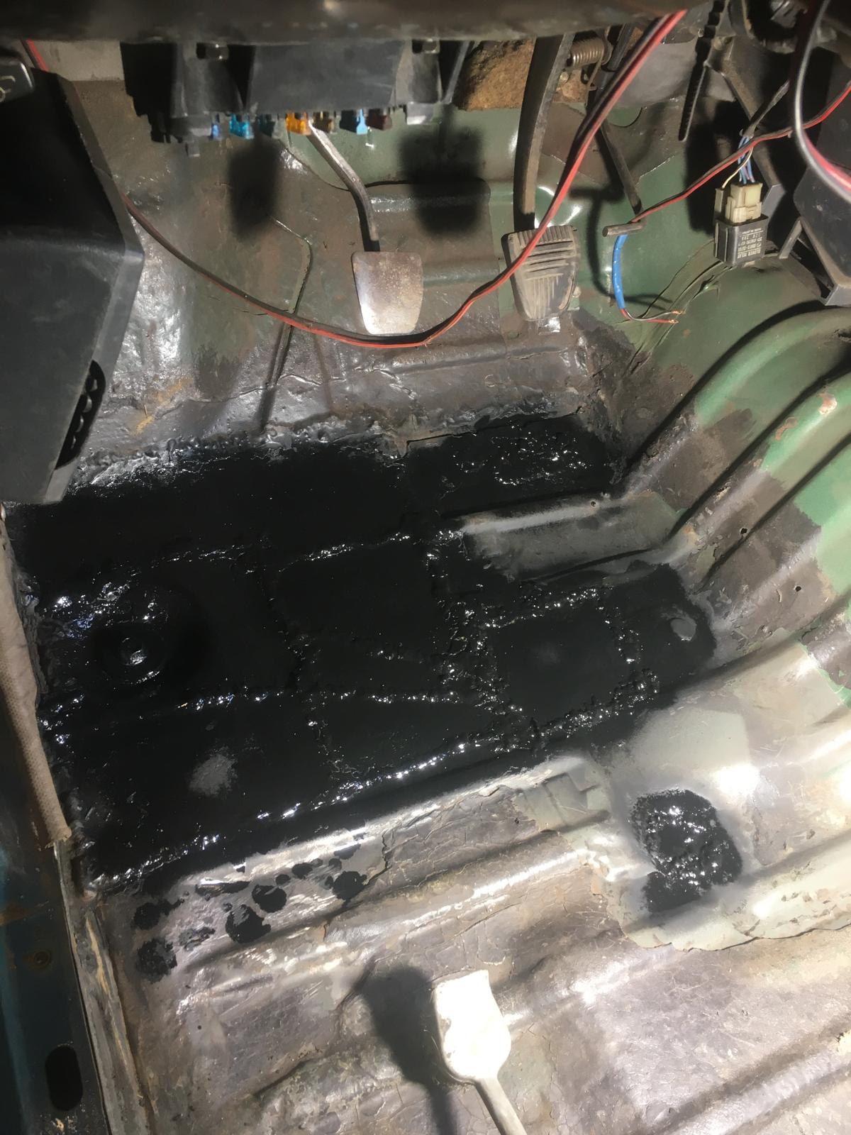 Kuskin jalkatilassa oli jo edellisten vuosikymmenten tilkkutäkit, mutta niiden jatkoksi sai siististi tehtyä jatkopalaa... Muuten kori itsessään olikin suuresti ruosteeton, sillä edellinen käyttäjä oli ruostesuojannut kaiken hyvin kattavasti. |