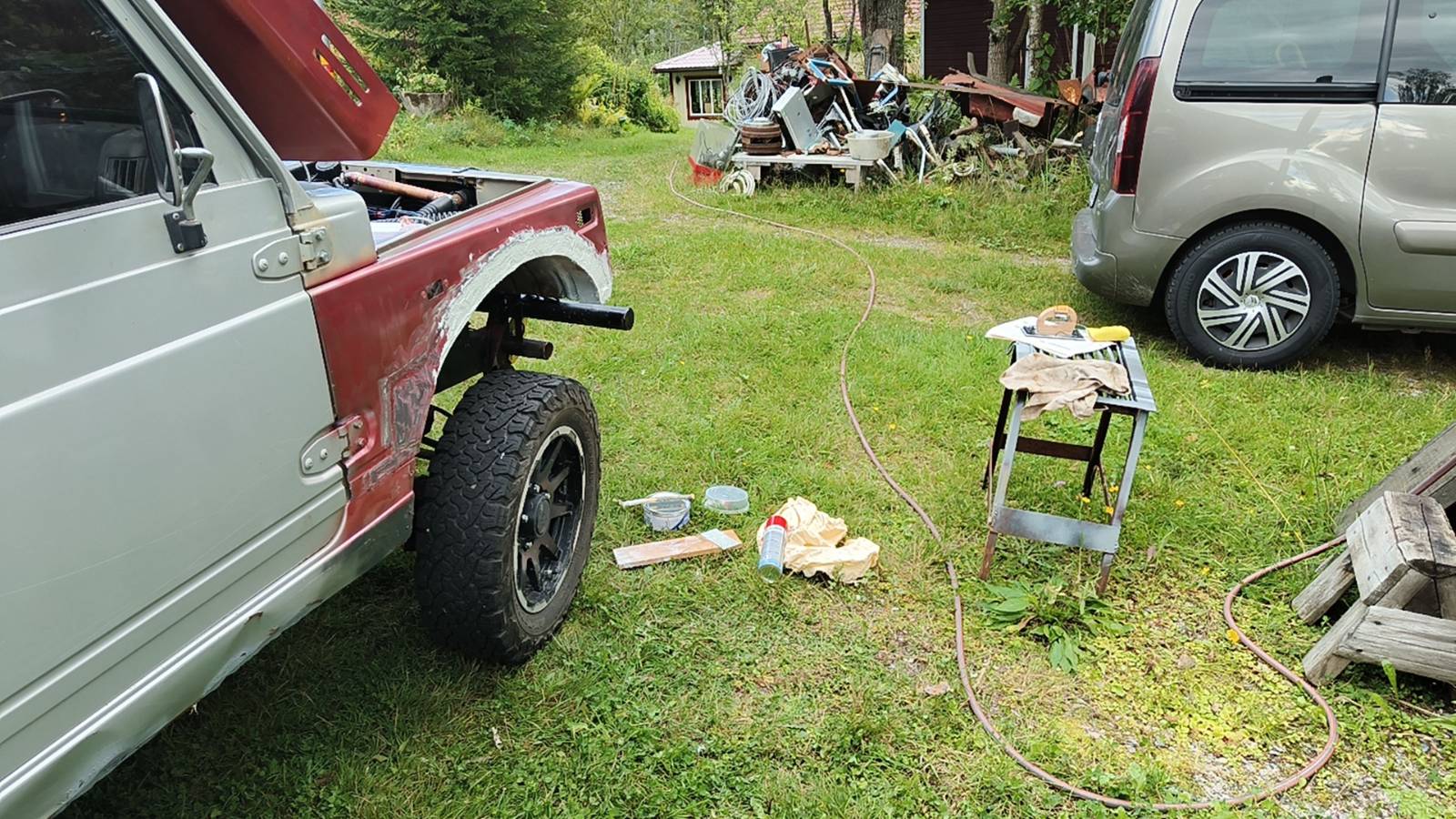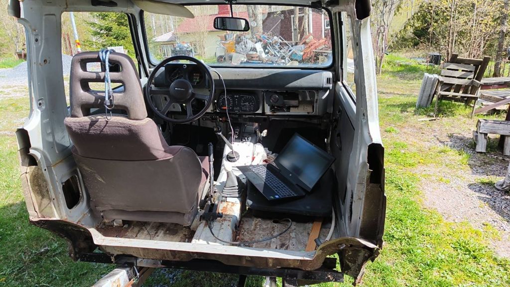 Keksintään asennettu turvavyötkin. ![]() Kattoa paikkailtu ja maalattu sisäpuolelta. Koe menossa auttaako Nordlock prikat kardaanin, jakolaatikon ym pulttien kiinnipysymistä. Pari ajelukuvaa. |