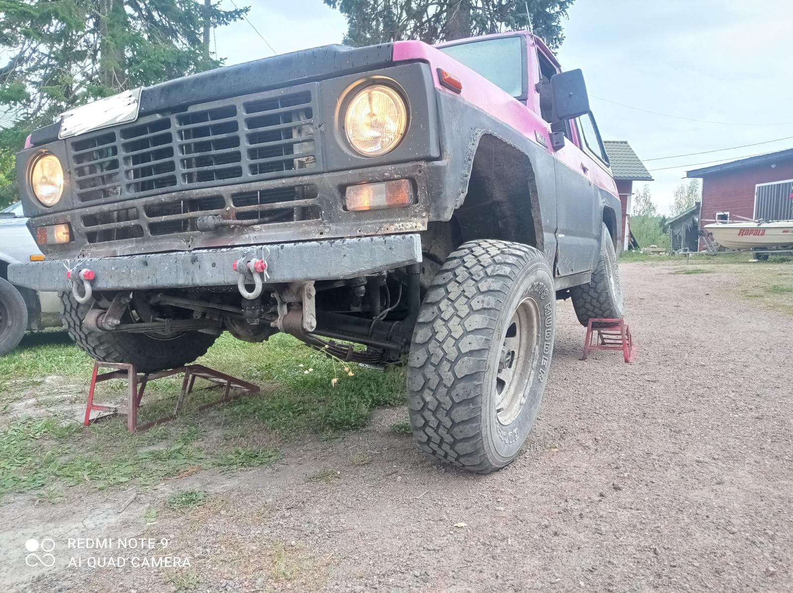 1981 valm. 160 Patrollin iskarit.En löytänyt vanhaa viestiketjua aiheesta. Eli mimmoset iskarit tulisi 1981.valm, 82.rek. pätkä patrolliin laittaa, kun netistä etsityissä varaosaiskareissa on täysin väärät pituudet ja luulen että alla olevatkaan ei ihan oikean mittaset ole: Esim. takaiskareissa on vain sentti ulosjoustovaraa, toki ilman koria ja tekniikkaa (polttoainetankki kuitenkin paikallaan ja melkein täys). Etuiskareissa oli se 35mm ulosjoustovaraa, mutta kuitenkin menee linkussa ihan kumiin asti ja kumin korkeus on todettu oikeaksi, kun toisella puolelta se puuttuu ja joustaa ehkä just sentin korkeammalle sillä puolella. Toki eihän sitä tiedä vaikka ottaisi iskari vastaan, mutta alkaa jousi olla ilman kumia jos sen näköin, että ei viitti kumia madaltaa, vaikka ulosjoustoa olisi enemmän toisella puolella. Olisi tarkoitus pari senttiä korottaa riipuilla kuollutta vakio alustaa. Parin sentin korotus on laskettu niin että oletuksena on, se että korotus on puolet siitä mitä se riippu pitenee vanhaan verrattuna, niin kuulemma menee? Olisiko järkevää tehdä kokonaan uudet kiinnityspisteet iskareille kun runko on nyt kuitenkin irrallaan? Mikäli tekee, niin minkä pituisille iskareille tulisi mitoittaa ja miten saa laskettua oikean mittaiset iskarit? Toki mitoitus täytyy tehdä vasta kun on ne pitemmät riiput asennettu, mutta täytyy jo etukäteen vähän selvittää... Ohessa kuvia, miltä joustot näyttää ääriasennossa. Huom. auto on työn alla, eikä tule olemaan noin mätä ja epäsiisti, kuva on vanha. Autosta löytyy projekti täältä palstalta.