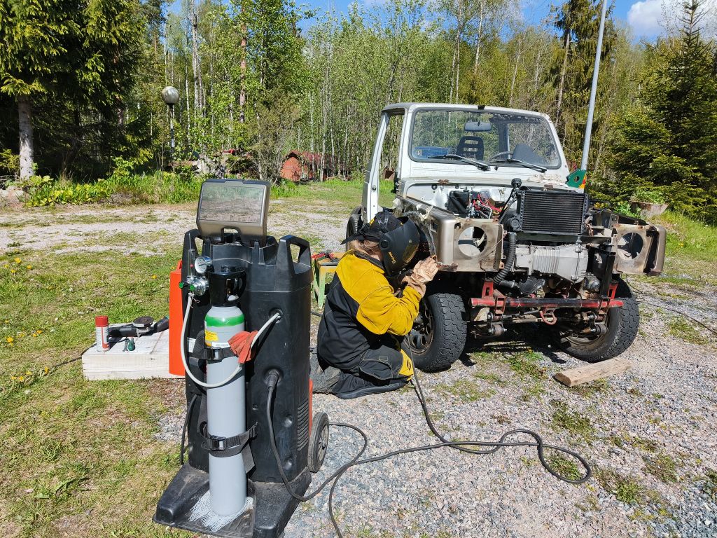 Nyt on sen verran ttuoretta peltiä lattiassa, että tossut ei huku mettään. ![]() Sadekkaan ei hidastanut tekemistä. Pressuteltta päälle ja homma jatkui täydellä vauhdilla. ![]() Lokasuojien aihioiksi löytyi Maken Samuraista aikoinaan hyljätyt ruosteenpesät. Noh kun ei muuta ole niin nämä ovat hyvät. Pahvi CAD käyntiin ja kohta mulla olikin sitten lokasuojat. ![]() |