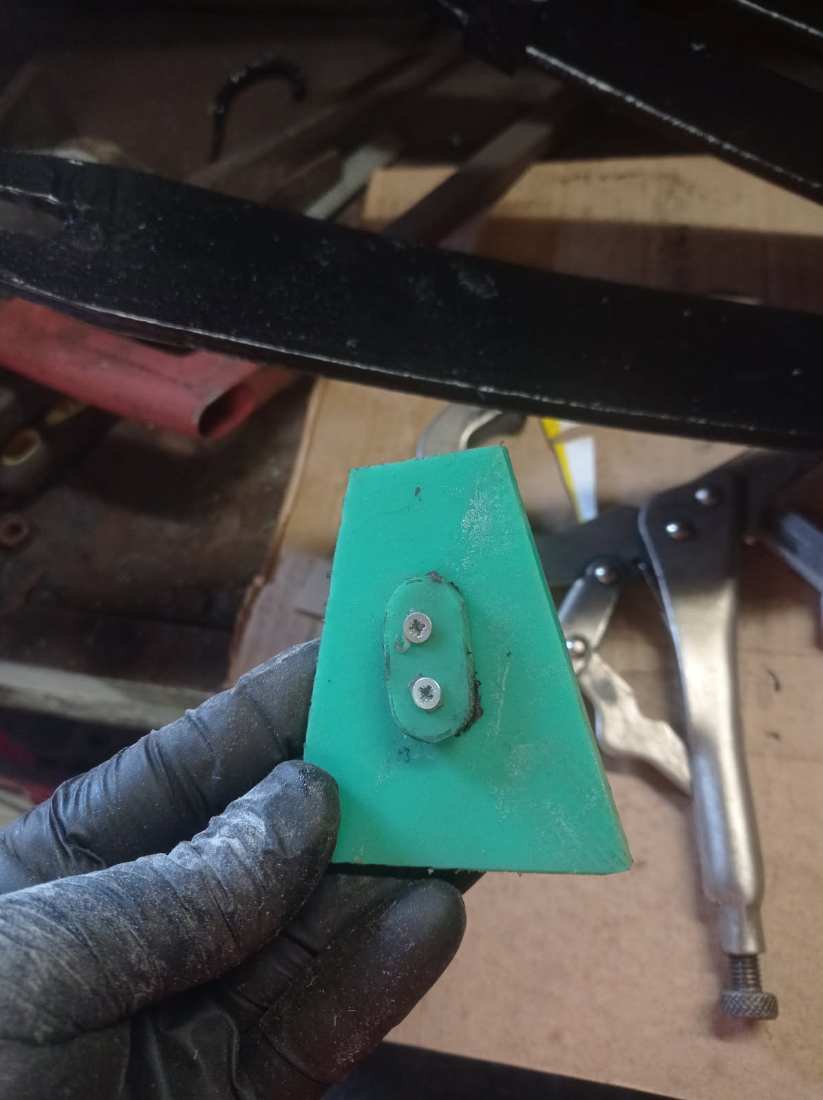 Hain uudet pohjalevyt ja U-pultit. Pitää näihin pohjalevyihin tehä iskarin korvake. Nyt kun alusta nousee sen parikytä milliä, niin lienee ihan ok, että tuo iskari tulee myös parikyt milliä ylemmäs... yläpään kiinnikkeet tulee vielä tehdä kuitenkin, niin voi vielä hienosäätää...
