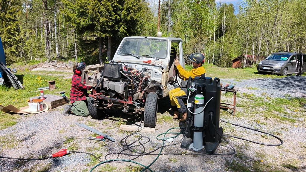 Nyt on sen verran ttuoretta peltiä lattiassa, että tossut ei huku mettään. ![]() Sadekkaan ei hidastanut tekemistä. Pressuteltta päälle ja homma jatkui täydellä vauhdilla. ![]() Lokasuojien aihioiksi löytyi Maken Samuraista aikoinaan hyljätyt ruosteenpesät. Noh kun ei muuta ole niin nämä ovat hyvät. Pahvi CAD käyntiin ja kohta mulla olikin sitten lokasuojat. ![]() |