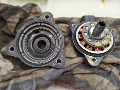 Useamman kerran mietin mitähän sieniä Nissanin insinöörit ovat syöneet tätä parkkilukon aktuaattoria tehdessään. Varmaan maailman monimutkaisin linkun kääntäjä. SRM (Switched Reluctance Motor) moottori ja sen perässä Cycloidi vaihteisto. Saman tempun voisi tehdä pienellä DC moottorilla ja ruuvivaihteella.