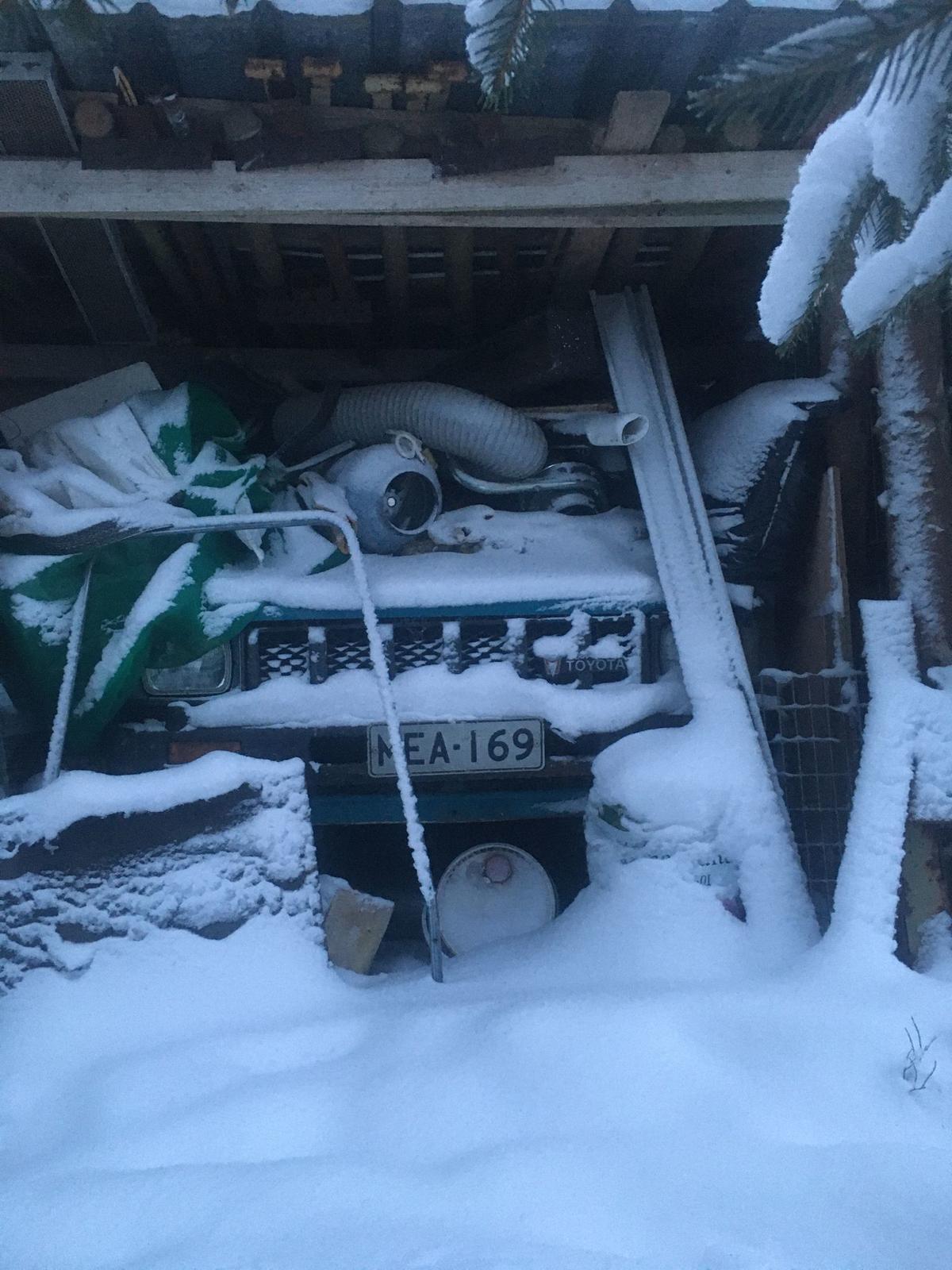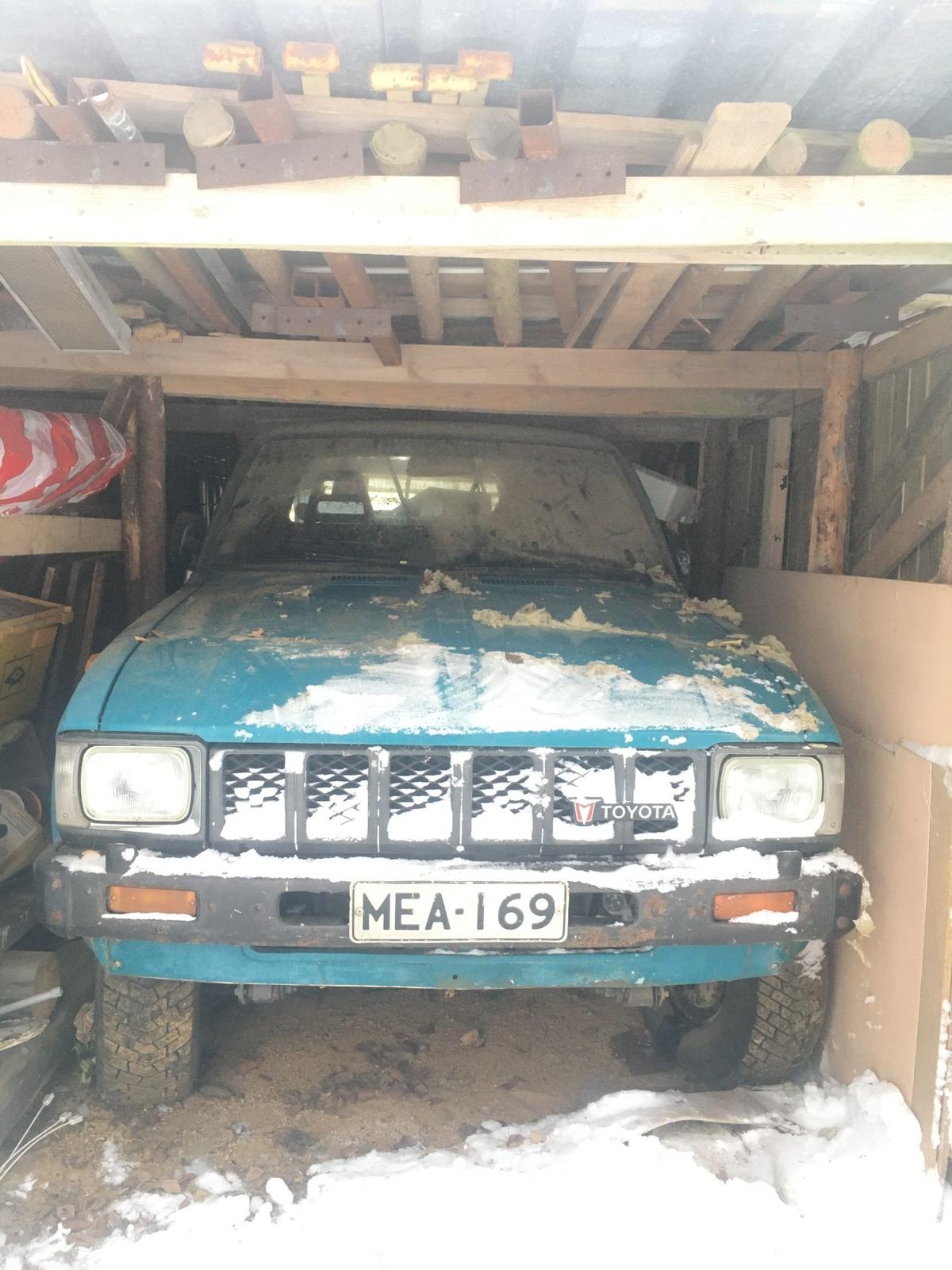 LN46 "Latolöytö" Hilux"Noin 10 vuotta sitten tämä yksilö pysäköitiin mökin taakse rakennettuun vajaan ja siellä se sai olla rauhassa kunnes allekirjoittanut tuli häiritsemään sen lepoa traktorin ja köyden kanssa. ![]() Tarkoitus olisi siis hitsata kyseinen yksilö tieliikennekelpoiseen kuntoon ja katsoa sitten mihin maailma vie" Tämä tapahtui siis tammikuussa 2024, mutta en silloin tajunnut tästä prokkiksesta tehdä tänne juttua, mutta kaiketi parempi myöhään kuin ei milloinkaan. Päivittelen tänne nyt pikapikaa projektin siihen saakka kuin se on päässyt ja sitten sitä mukaa kuin se etenee.