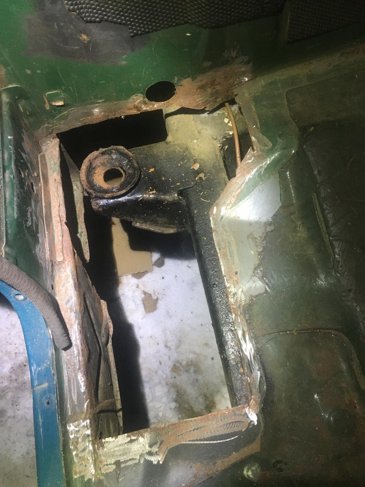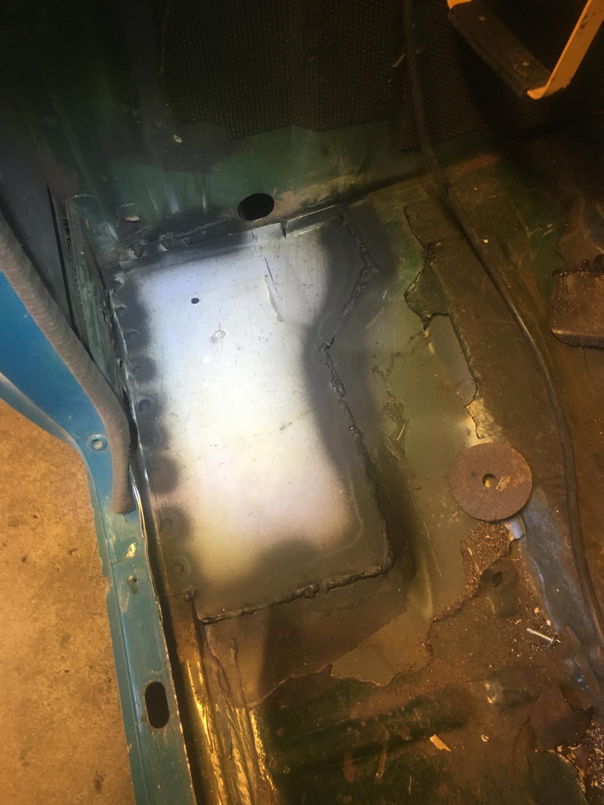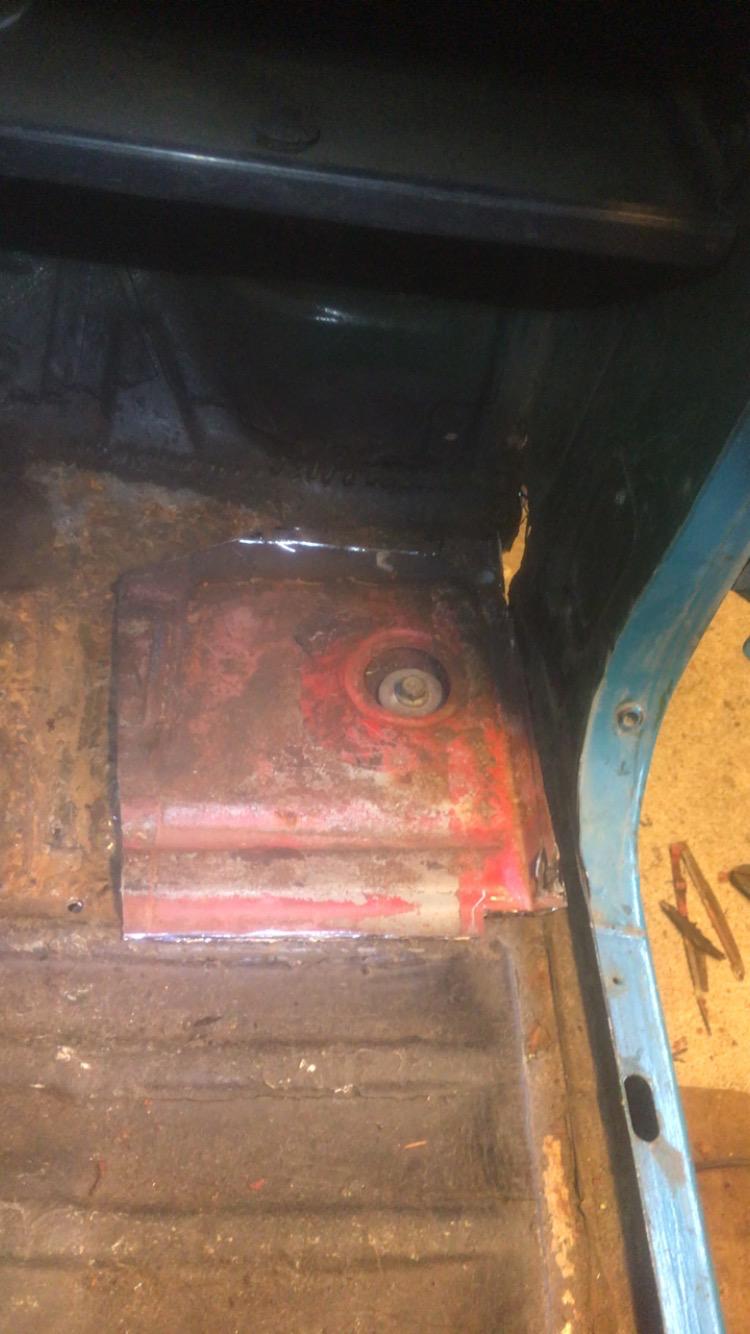 Kuskin jalkatilassa oli jo edellisten vuosikymmenten tilkkutäkit, mutta niiden jatkoksi sai siististi tehtyä jatkopalaa... Muuten kori itsessään olikin suuresti ruosteeton, sillä edellinen käyttäjä oli ruostesuojannut kaiken hyvin kattavasti. |