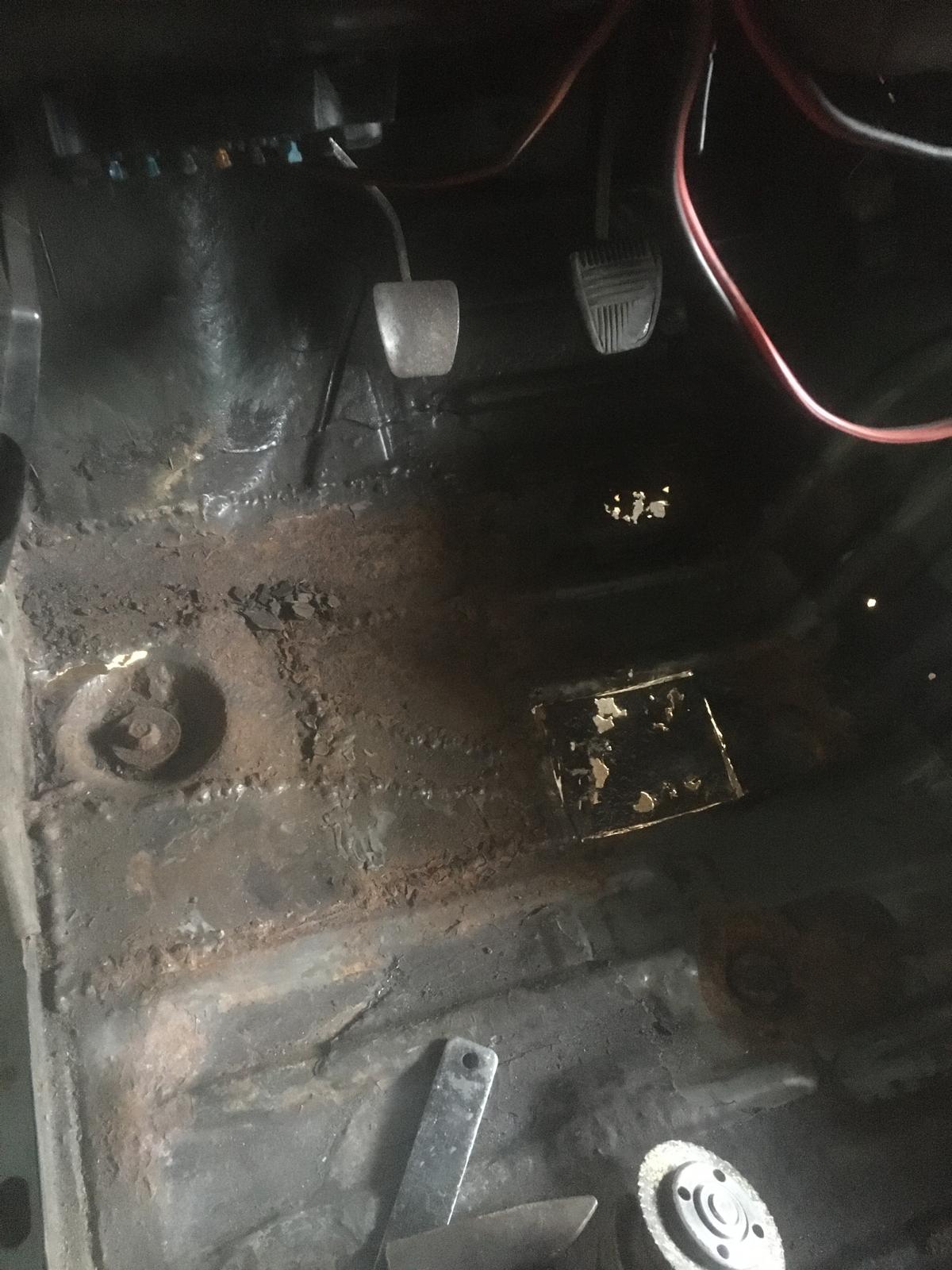 no, alunperin "hyvistä" pelleistä löytyi kuin löytyikin reikiä ja vanhoja pakkeleita. Runko oli onneksi ruostesuojattu ja sitämyötä kunnossa. Lokasuojissa oli ruostetta perinteisissä paikoissa ja hytissä niin kuskin kuin pelkääjänkin jalkatilassa. Hytissä oli myös Hilun edellisen kerran pysäköineeltä jäänyt homma kesken, siksi ammottava aukko takaosassa valmiina. |