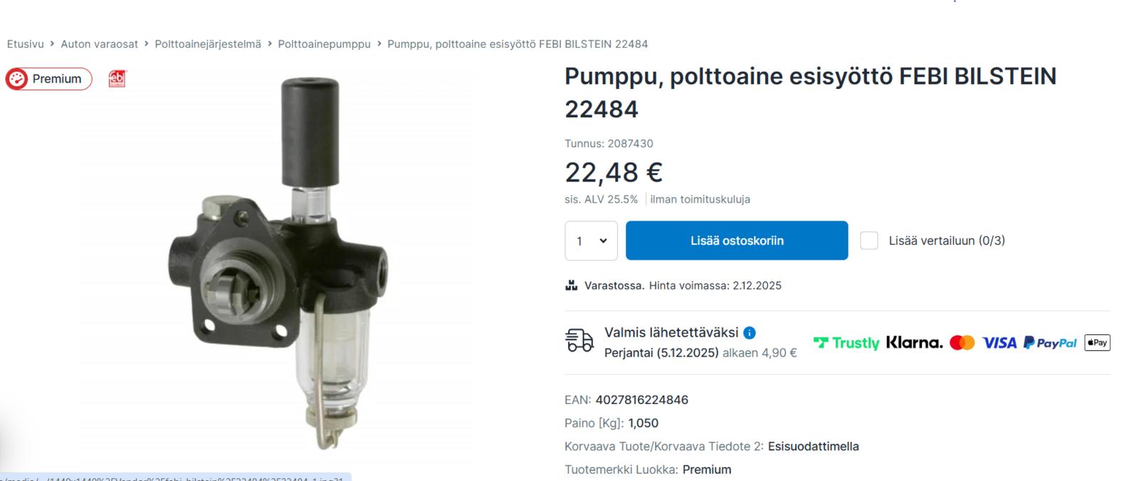Kerran nimittäin teki tuo Patrolli sen perus tempun, että tukki sen tulolinjan banjossa olevan sihdin, ruosteisen polttoainelinjan takia... Nyt kun on sakkakuppimalli, niin saa sen sihdin ottaa pois ja näkee heti jos on paskasta dieseliä. Se on kyllä helvetin outoa että oli noin halpa, vaikka FB on kuitenkin "premium" luokan varaosavalmistaja... Niin lukee oikein noissa nettikaupoissakin...