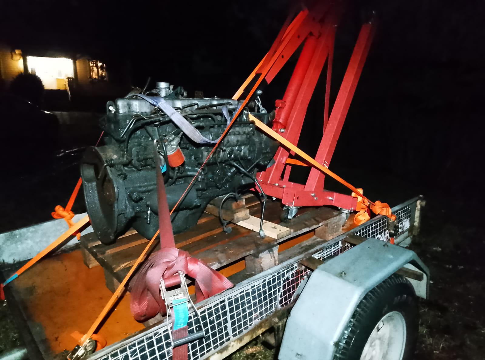 . Tuo kone on myös samaa ennen 1983 valmistettua mallia, kuten tuo minun omakin moottori . Aikamoinen tuuri oli.Suuttimet, laturi, tehostin, sartti ja siirtopumppu puuttuu, muuten näyttää kohtuu kokonaiselta. Oli muutenkin tarkoitus käydä pääkaupunkiseudulla kaverin nurkilla pyörimässä, niin sai moottorin haun yhistettyä siihen ja sain kaverinkin auttamaan lastaamisessa ![]() Hyvin tuo Pajero ja peräkärry kesti tuon yli 300km reissun, joka on hyvä suoritus Pajeron koneelle