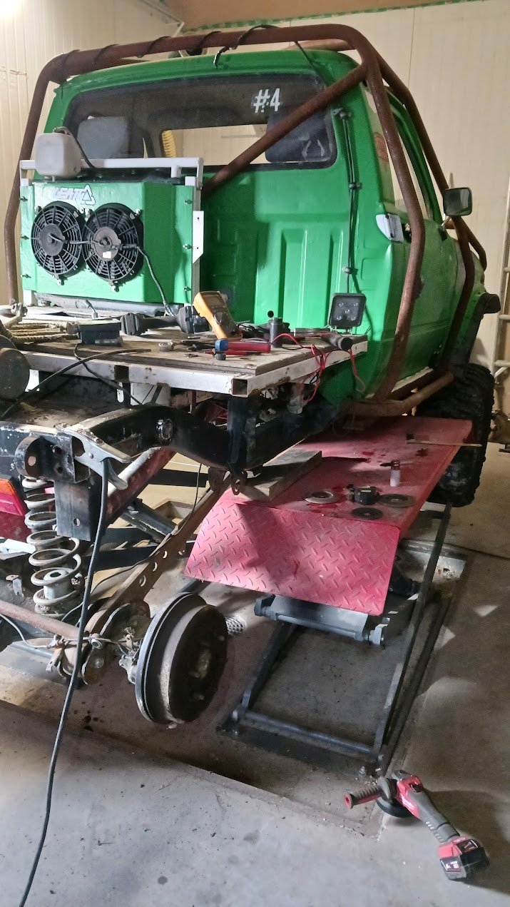 Hilux -83Myydään / Vaihdetaan Ruma, mutta toimiva laite metsään.Tieliikenteeseen tätä tuskin kenenkään mielenkiinto riittää askartelemaan. - Runko kova ja epoksimaalissa. Lyhennetty taka-akselin kohdalta. Flatbed, syyläri hytin takana, turvatankki ja akku lavan alla. Korotettu. Häkki hytin ympäri. -Ohjausvarret nostettu. Panssarit. Taka-akseli kierrejousilla ja roverin tukivarsiila. - Moottorina jälkiahdettu 2.4D, kohtuukokoinen ahdin ja cooleri keulassa. - Vinssi molemmissa päissä, valoja sopivasti. - Alla melko kuluneet 32" boggerit lukkovanteiila. - Paperit löytyy. Jarrutehostin ei toimi, koska pumppu puuttuu. Vaihdettu 140 Vag laturi. 3000€, vaihdossa tieliikennekelpoinen maasturi Raumalla O4O6729089 Myydään / Vaihdetaan Viimeksi muokannut HelaKone : 08.12.2025 10:57 |