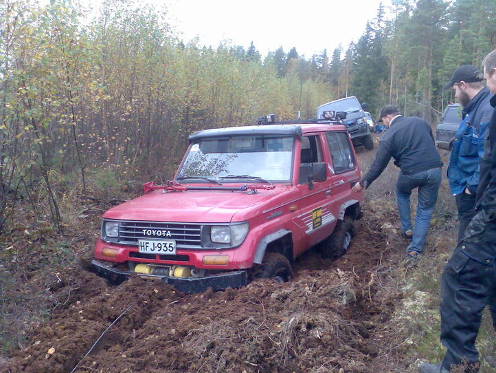 Reitti on noin 1-2km ei tullut mitattua tarkemmin. Aikaa meni noin neljä tuntia, kun piti tietä raivata ja välillä autoja irrotella