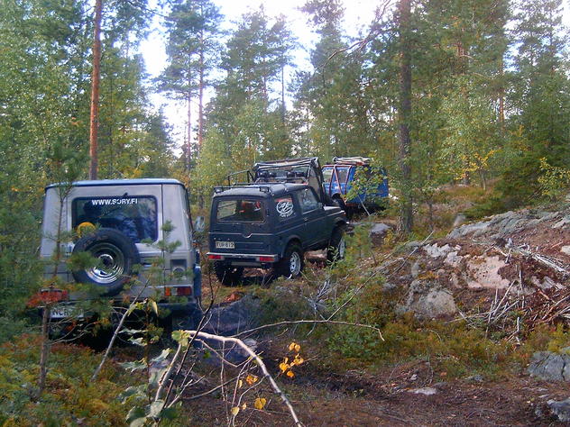![]() Samoilla ajolinjoilla, paitsi suzuki jäi vähän kauemmas.. Ja Markon autollahan ei päästy edes näköetäisyydelle esteestä ![]() |