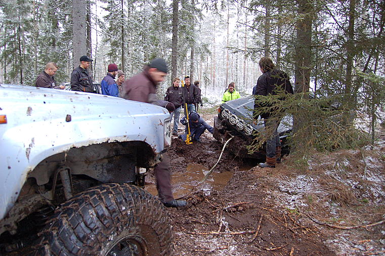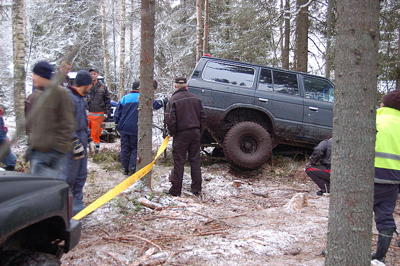 Ensin luulin että kardaanin ristiko huusi kovalla äänellä kun klappiakin oli ihan kivasti, joten vaihdoin sen, mutta se ääni ei kadonnut. Sitten pari tuntia ihmettelyä ja en saanut ääntä paikannettua nostin auton puupalikoiden päälle ja sain kaverin viereen kuuntelemaan mistä ääni kuului, niin vinssin kardaanihan sielä omiin nimiinsä pyöri oli ilmeisesti jossain vaiheessa pökännyt maahan ja kääntänyt vipua sen verran että oli mennyt päälle ei vaan missään vaiheessa tullut mieleen että olisi noinkin voinut käydä kun ei ole vielä ikinä ollut minulla päällä kun tuo vinssi on ositain kytkemättä. Jousen riipukekin oli jo kääntynyt oikein päin kun kotona rupesin ihmettelemään, että siinä ei sen suurempaa vikaa ollut.