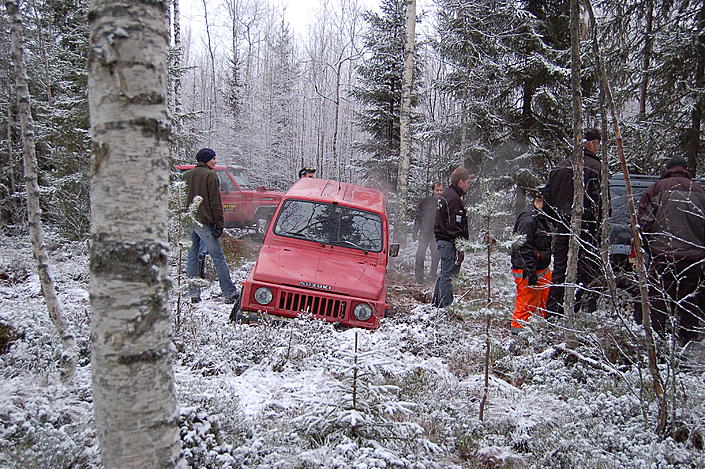 Ensin luulin että kardaanin ristiko huusi kovalla äänellä kun klappiakin oli ihan kivasti, joten vaihdoin sen, mutta se ääni ei kadonnut. Sitten pari tuntia ihmettelyä ja en saanut ääntä paikannettua nostin auton puupalikoiden päälle ja sain kaverin viereen kuuntelemaan mistä ääni kuului, niin vinssin kardaanihan sielä omiin nimiinsä pyöri oli ilmeisesti jossain vaiheessa pökännyt maahan ja kääntänyt vipua sen verran että oli mennyt päälle ei vaan missään vaiheessa tullut mieleen että olisi noinkin voinut käydä kun ei ole vielä ikinä ollut minulla päällä kun tuo vinssi on ositain kytkemättä. Jousen riipukekin oli jo kääntynyt oikein päin kun kotona rupesin ihmettelemään, että siinä ei sen suurempaa vikaa ollut.