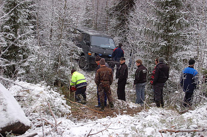 Ensin luulin että kardaanin ristiko huusi kovalla äänellä kun klappiakin oli ihan kivasti, joten vaihdoin sen, mutta se ääni ei kadonnut. Sitten pari tuntia ihmettelyä ja en saanut ääntä paikannettua nostin auton puupalikoiden päälle ja sain kaverin viereen kuuntelemaan mistä ääni kuului, niin vinssin kardaanihan sielä omiin nimiinsä pyöri oli ilmeisesti jossain vaiheessa pökännyt maahan ja kääntänyt vipua sen verran että oli mennyt päälle ei vaan missään vaiheessa tullut mieleen että olisi noinkin voinut käydä kun ei ole vielä ikinä ollut minulla päällä kun tuo vinssi on ositain kytkemättä. Jousen riipukekin oli jo kääntynyt oikein päin kun kotona rupesin ihmettelemään, että siinä ei sen suurempaa vikaa ollut.