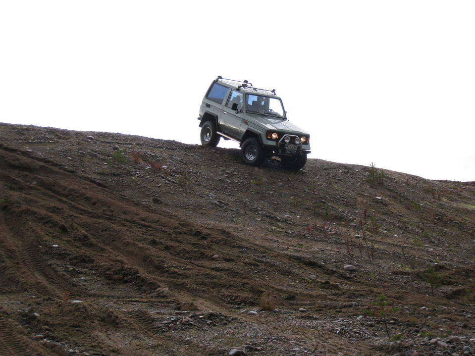 Rauhassa paistelin makkaraa ja havahduin rysähdykseen ja tappavaan hiljaisuuteen, totesin muille siinä ohimennen makkaraa kääntäessäni,että taisi mennä nurin. Hetkeen ei kuulunut mitään, joten menimme tarkastamaan onko kaikki OK, Siellähän se kaveri istui auton päällä ja näytti peukkua Onneks oli varapyörä katolla niin ei tullu pahojakaan vaurioita.