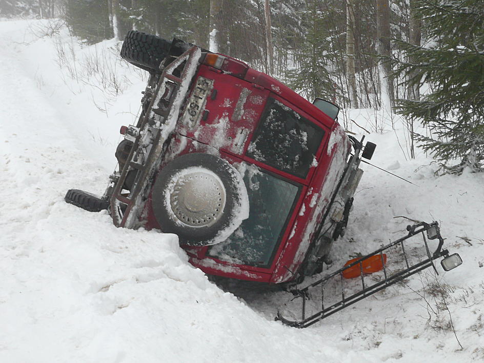 Ajelkaa varoen hiluxeilla. Noi minun kaato kuvat varmaan kertookin sen. Ei ollu kaksinen mylskähdys ja katto oli jo ihan oikeesti sisällä. En tiiä sit muista merkeistä, kai ne kaaret pitäs olla joka autossa millä vähänkin vaikeammissa paikoissa ajetaan.