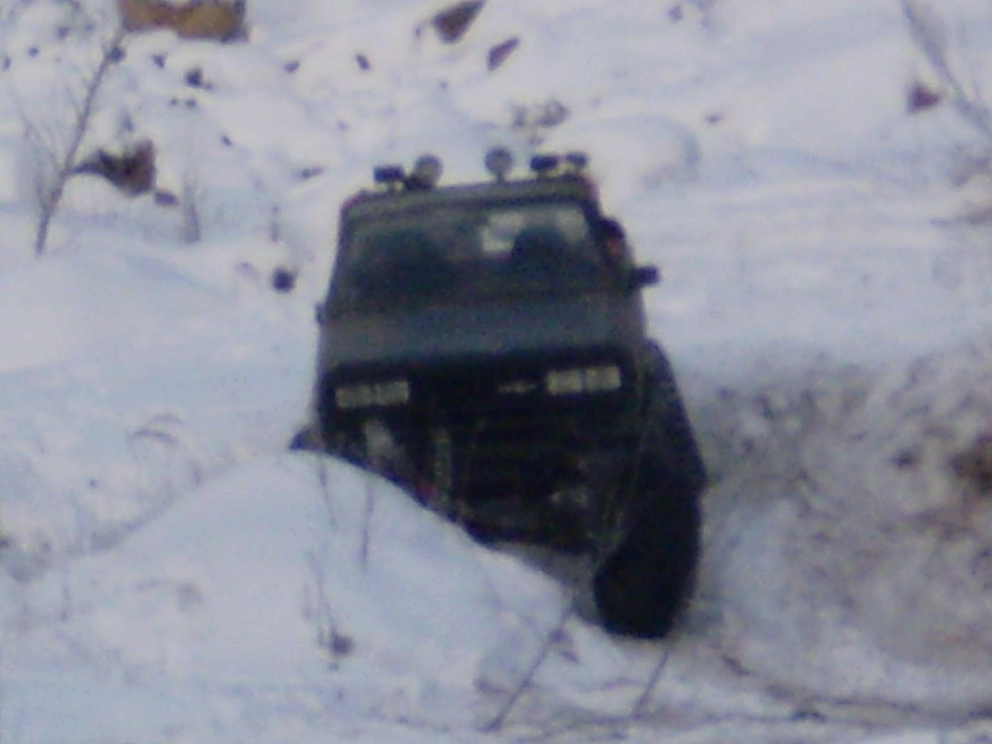 Kumin vaihdon jälkeen lähimmä Vepelen kanssa etsimään helppoa kiertotietä lyhyempää oikotietä, lumi tekee omat vaikeutensa: Ei oikein pitoja: Vinssi leikeiksi meni: Tunnelma kuva tän autosta, narun vetoa odotellessa(on kuulemma hinaus paras juttu, maasto eväiden jälkeen): Tästä tuli Vepele ensin ja kyytiläiset sano et vähän tuntu ahtaalta, Pörrö(?) siihen sitten parkkeeras: Vielä kuva hoojiistä, tässä näkee taas kuinka surkia ja hidas kamera tää olympus onkaan(höystettynä huonolla kuvaajalla): Menihän tältä vielä tuolta keulalta pyykkinaru poikki... Kivaa oli, hyvin tais vakio rangekin edetä. Olis sit muuten kolme allterrainia myynnissä