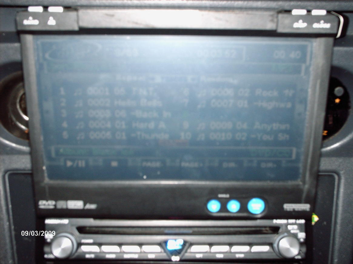- CD, MP3 & DVD-soitin - 7" moottoroitu KOSKETUSNÄYTTÖ - mahtuu normaaliin soittimen DIN aukkoon - resoluutio 336960 pikseliä ( 1440x224 ) 16 MB High Speed Flash memory ( 80 nS access time ) - tuetut formaatit: DVD-R, DVD-RW, DVD+R, DVD+RW, CD-R, CD-RW, CD-DA, MP3, WMA, VCD, VCD ja MPEG1,MPEG2,MPEG4,AVI ja JPEG - RDS Plus Tuner II-viritin - Kaukosäädin mukana - Etu-, taka- ja SUB RCA-lähdöt ( 5 voltin ) - subwoofer-lähdössä tasonsäätö - i-POD-ohjaus suoraan kosketusnäytöltä - i-Podin kytkentä vaatii lisävarustekaapelin (toimii kaikkien paitsi i-POD Shufflen kanssa) - 4-kanavainen vahvistin - ISO-liitännät - AV-tuloliitännät - videolähtö lisänäytöille En tiiä onko just tämä malli mutta tämä kuva siinä oli ja tämän näköinen k.o. soitin on. JA NYT TIEDÄN ETTÄ ON JUURIKIN TÄMÄ MALLI! Ja on joku iPod mahdollisuus jos hankkii jonku spesial-über piuhan, eli telakka ipod ohjaus (ei siis shuflelle, shuffle käy auxiin) Viimeksi muokannut offisami : 13.03.2009 12:37 |