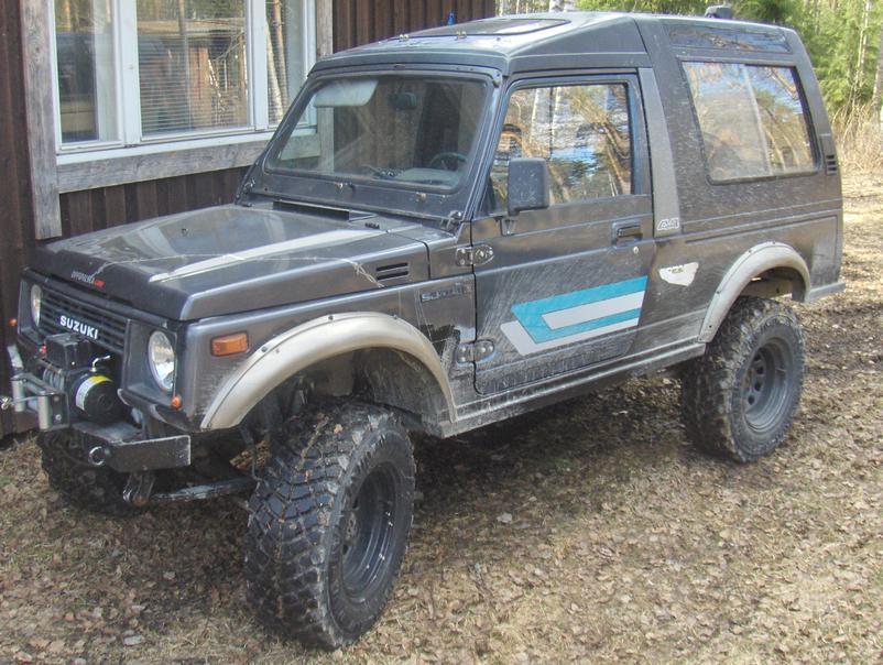 tuli isommat renkaatkin suikkaan tänään puljattua. mudzilla 33x13,5. vähän tarvii kääntöö rajottaa tai jotain spacereita hommailla tai sorvailla...ottaa jousiin kiinni käännettäessä.