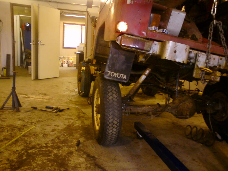 taas tuli jotain tehtyä.nyt istu moottorikin paikkaansa ja etu kardaani jäi 12cm lyhyeksi.sisään joustoo on 12cm ja ulos 63cm vielä ei ole venytelty ristiin kun takana vielä paikallaan lehtipakat.