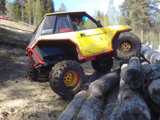 Joo hauskaa oli vaikka ajot jäikin vähän kesken, onneksi pienillä vaurioilla selvittiin! Kiitokset kaikille. Oon kuvitellut että yleensä vinssiä käytetään auton vetämiseen vetelästä, mutta omaan rotteloon näköjään tarvitsee enemmän vinssiä osien oikomiseen/irroitteluun