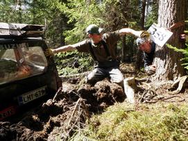 Käärme2 (S13) kiittää myös näin toisen kuljettajan puolesta loistavasta kisasta, järjestelyistä ja avuliaista kanssakilpailijoista ja tietenkin siitä tunnustuspalkinnosta Meillä oli näin ensikertalaisina oli "ehkä" vähän väärä kalusto tällaiseen kisaan, mutta ilman suurempia vaikeuksia kummasti päästiin liikumaan. Kartan (mitä se sininen on) ja luetunkin (neva) ymmärtäminen ei ollut ainakaan ensimmäisen alueen valinnassa ihan hallinnassa, onneksi Quicksilver teamin ankkuriavulla saatiin HDJ käännettyä ja vinssaamalla melkein koko ura takaisin päästiin alkamaan oikea kisa Tulipa vinssi testattua kerralla oikein kunnolla. BJ:n tunaaminen alkoi jo eli ette pääse meistä eroon ihan näin helpolla