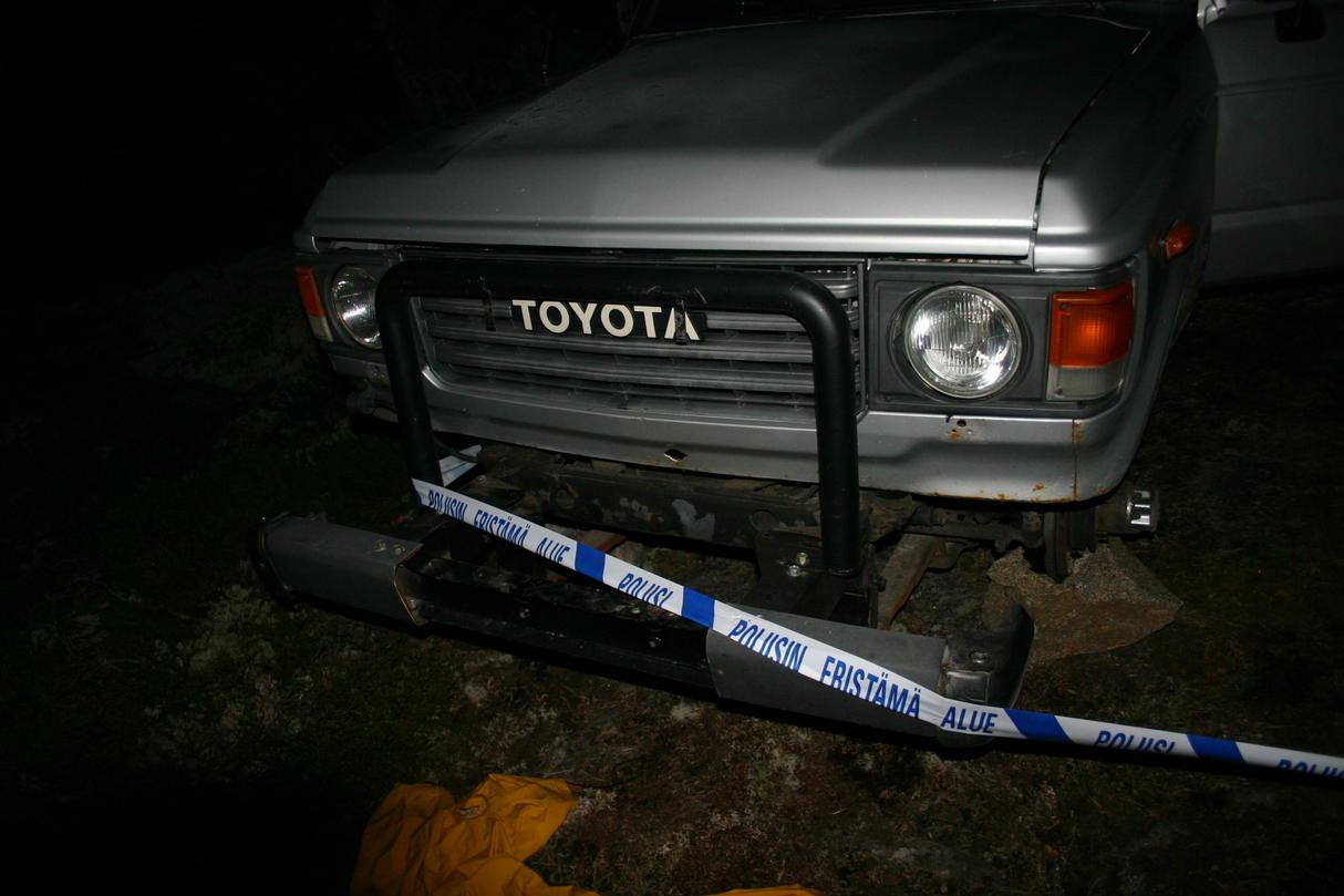 Tojota löyty sauvosta asteen verran karsittuna. Autosta on viety renkaat,vinssi,akut,ylläpitolaturi,kattotelineet valoineen,takaluukut (ehjäpeltiset), itse tehty väliseinä, rokkivehkeet, kilvet, ym ym.... et taitaa alkaa meikäläisellä uus projekti.
