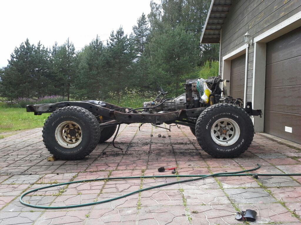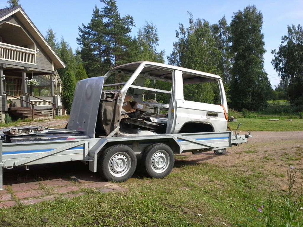 Hieman mätä remonttia tuli askarteltua kavereiden kanssa, kun ei mennyt leimalta läpi. Piti olla alkuun ihan pikku juttu, mutta menikin vähän reilummaksi remontiksi. Perää ja muutamaa muuta osaa kävi hiekkapuhalluksessa ja maalauksessa lopuksi vasaralakkaa päälle. Kaveri hoiti hitsauksen, kun teki niin siistiä jälkeä. Itse olisi saanut aikaan jotakin, mutta välillä jälki ei olisi ollut niin hyvää