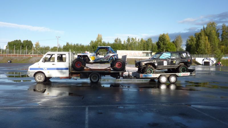 on ilmo lähteny ja jossittelut jatkuu kisojen jälkeen.ja kyllä sinne vielä autoja mahtuu kuulemma.ainut mikä askarruttaa on tuo melu mittaus eli rajotin alle4500 tai putket täyteen teräsvillaa,mut ei pidä tehä siitä ongelmaa eiköhän siitä kaikki selviä ketkä haluaa ajaa