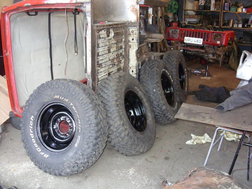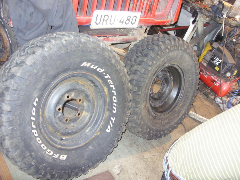 Nyt ois kumit vanteilla ja nyt mahtuu kääntymään ja pyörimään rengas. pohjaa on taas valmistunu mutta loppu pelti kesken nii en saanu tehtyä loppuun