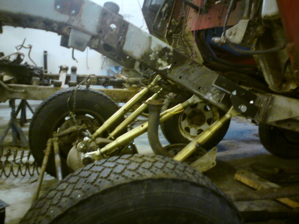 Akselin vääryyden näkee sitten kun vetareita sovittelee paikalle,hitsauksen vastapuolelle lämpöä niin eiköös oikene.Jouset on 240 volvon,en tiedä kantaako mitään.Miten paljon nuo "jakarit" tarvii joustaa akselin kiinnityksestä? nailoni puslilla ne ei käsivoimin liiku minnekkään.Mikä tukivarsien oikea kulma on? suoraan eteenpäin vai V mallinen kiinnitys? Jenkatangon pätkä tulee kuitenkin tukivarteen rungon kiinnitykseen.Nyt tarvitaan toimivia ideoita etten tee täyttä sutta.