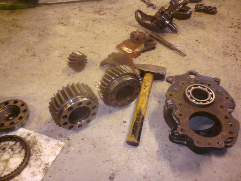 Ai portaaliboksien sisuksissa vinoo ja suoraa hammastusta. Oliks viel eri välityksiäkin? juu kyllä niistä kääntöpäistä löyty vinohammastus ja eri välitys oli aika sovittelu ja sorvaus kun ei sopinut koteloon suorahampaiset rattaat,on sit kovaa ainetta kun ossikin sano et meinaa sorvi täristä ulos hoppyhallista ja terästä tuli samanlaista kipinää kuin sädetikusta! ossi vetasi isolla lentävällä mieleisensä raidevälin taakse. tänään oli heftannut toisen kääntöpäänkin paikalleen ja toiseen sorvannut rattaat valmiiksi. vielä puuttuu vetarit ja sit rupee tulee mitä ihmeellisimmän näiköisiä putki mutkia. moottorista tiedän et tulee 5 vai 6 vai oliko se 7:kalla alkava heppaluku vai oliko se 1,2,3 mut bensa kuitenkin