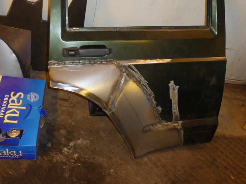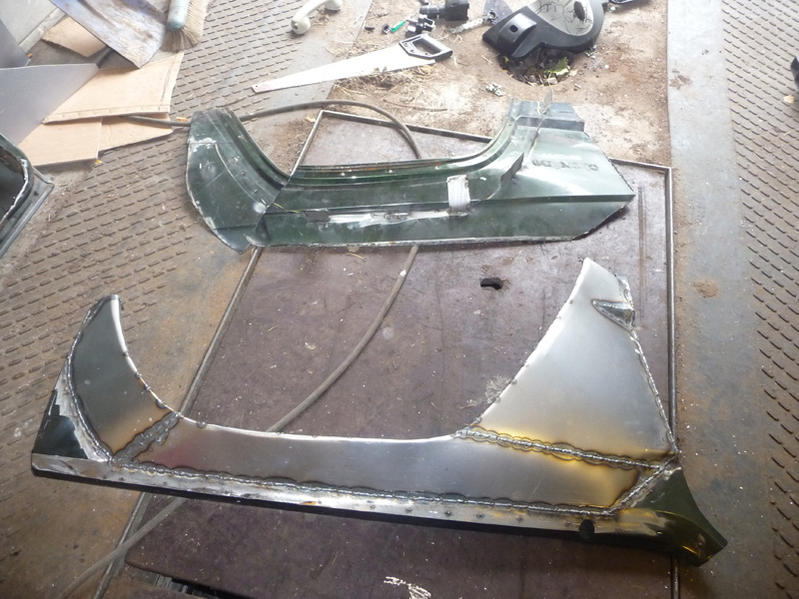 Toinen takapyöränkotelo muotoutunut uudestaan, mutta pientä sipistelyä on vielä että saa takapenkit ja muut osat mahtumaan. Oikeanpuolen kulkilevikkeetkin karkeasti muodossaan.