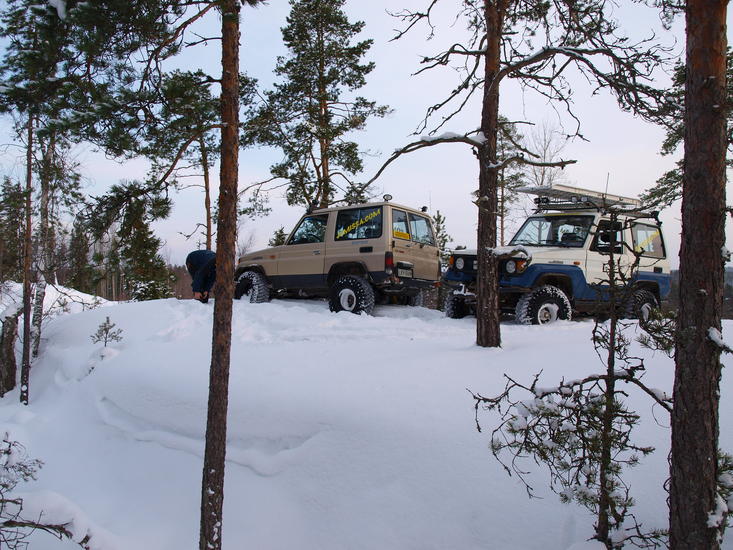 Aattelisin et saadaan ajettuu aika hyvin paikkoja läpitte jokasella autolla, kun lumi antaa aika paljon anteeks, mut näillä maastoilla mennään
