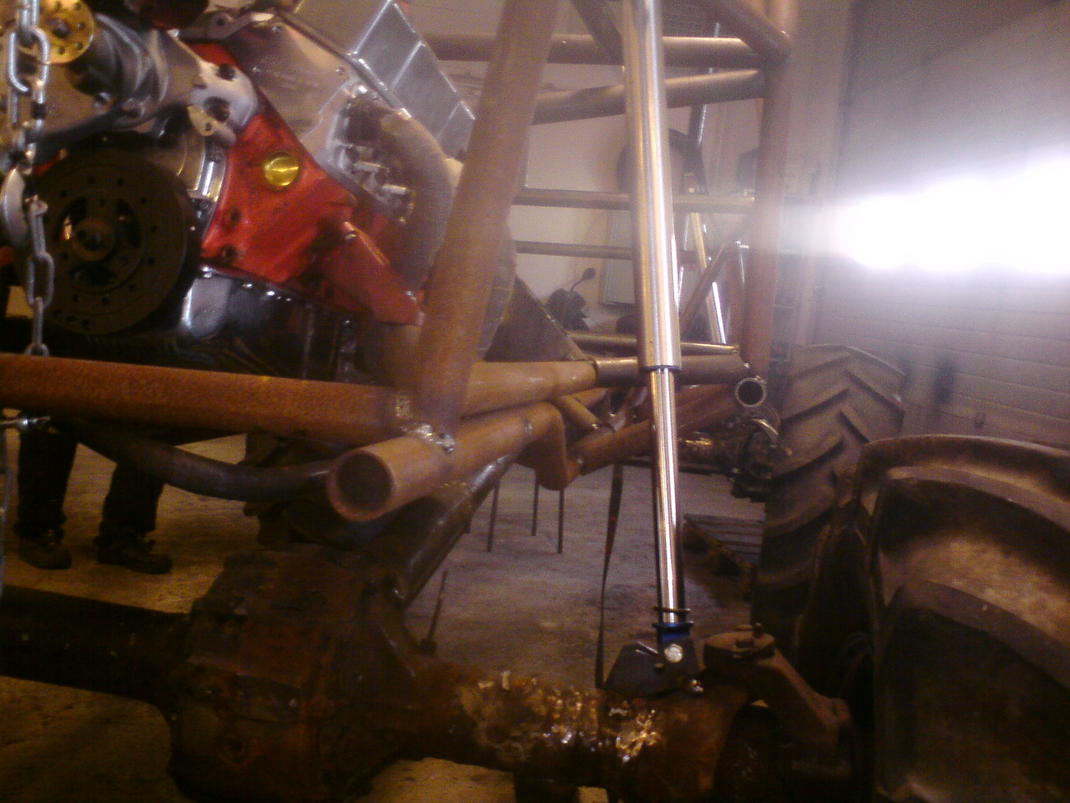 nyt olisi tikut paikoillaan ja korkee kun perkele et ei vaan tulisi RAASU efektiä. no paineiden kanssa pelattiin ja kivalta se näyttää kun on korkea. sai ottaa jo apurunko hässäkän pois alta ja 1000 kiloa erinäistä metalli muhjua tuli harjattua.pari putkee ja panhardit paikalleen niin alkaa helvetillinen hitsaaminen kun koko katiska on vielä hepeissä.