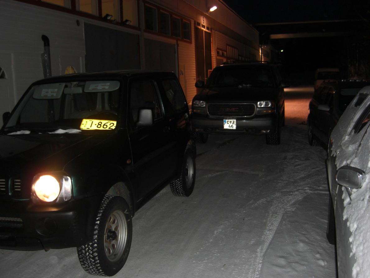 on niin kylmät kelit jotta bensakin jenkeissäkin kuulemmä jäätyy joten eikun 3000kg suzukin hinaukseen ,näköjään tulee tollanenkin mörkö perässä vaikka veturi on pikkumaasturi.