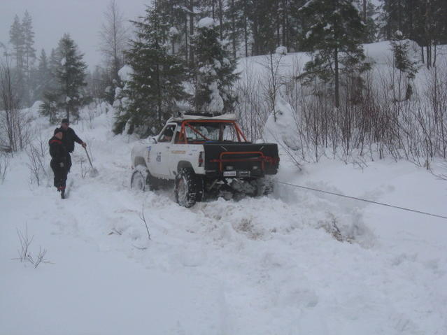 Etuvinssin sähköissä oli pientä vikaa ja jossain vaiheessa alkoi sellainen pienimuotoinen valoshow... Murros kuulemma naputteli hienosti, ite en kuullu mitään, mutta jos offroad "eläkeläinen" Myllis ja Baxxter niin sanoo niin pakkohan sen on olla niin... Päätettiin lopettaa vielä kun auto oli ajettavassa kunnossa. Mutta kivaa oli niin kauan kuin ajettiin... Kiitoksia seuraavasti; S01 pitkästä vinssaus avusta, ja Lipposta ja Turun seudulta ollutta Orkkisluokan suzukia kun nykäsitte meidät pois rastilta... ( takavinssi olis pelastanu) Myllysen Timppaa ja Askolan "offareita" hitsauskaluston lainasta ja rengasrumba avusta... Baxxteria ARBin lainasta Vexxiä renkaiden lainasta Kesistä hallin lainasta Järjestäjiä mukavasta kisasta...