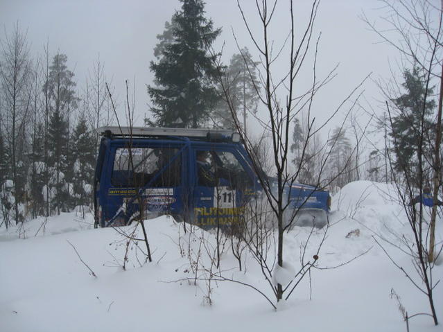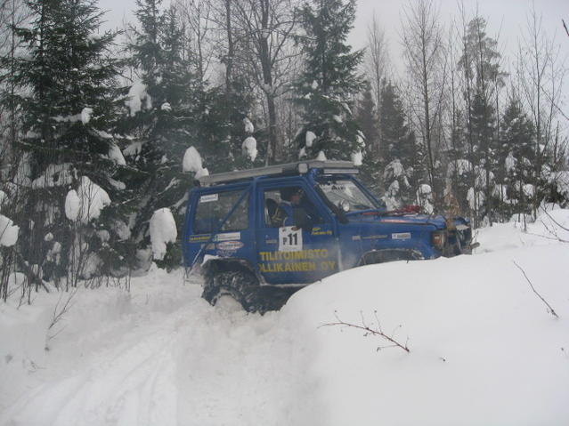Kone Ollit tekivät kohtuullisen pitkään remonttia mutta silti stanuissa sijoitus kolmas, ei huono! Portaali Läjä nousemassa rastille. J-T ja T££MU ![]() Los Hapetus, lunta ilmassa. Ensimmäinen kolhukin Suzukiin, onneks ei ollu korinoikaisusarjaa tai oltas jouduttu hommiin. ![]() |