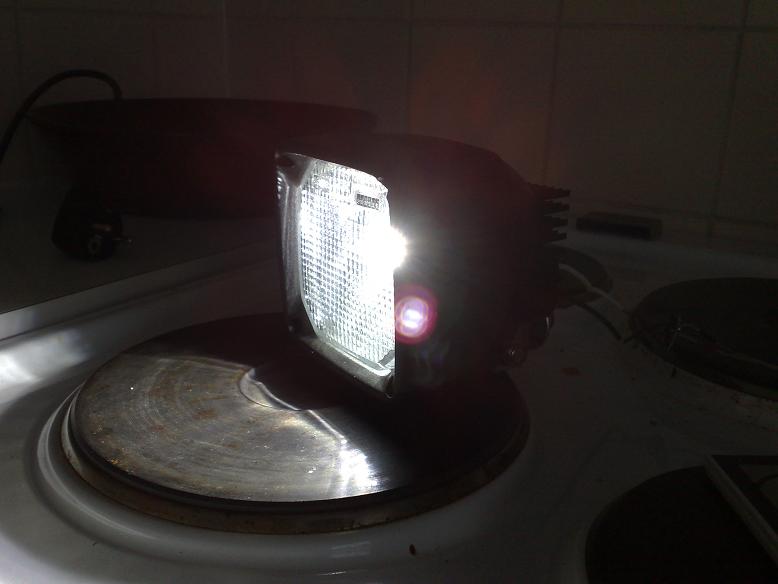 meinaatko lisäpitkiin ledejä? jos niin voi tulla ongelma että miten saat ledin tarpeeksi "syvälle" umpion sisään hajoittamatta heijastinta. eikä se siltikään toimi kunnolla, työvalossa ihan eri homma kun valon ei tarvi näyttää kauaksi ja pienellä "vääristymällä" ei ole merkitystä. ledi kun ei säteile lähellekkään niin laajassa kulmassa kun hehkupoltin tai xenoni.