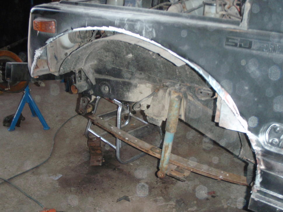 Lähtökohtana toimi suht orggiskuntoinen sj413. Edellisen omistajan toimesta oli mm.ruosteita paikkailtu ja palkkihelmat asennettu,eli niihin ei tarvinnut puuttua(taisi olla tervein suikan koppa, johon olen koskaan törmänny) .