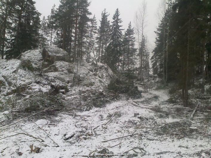 Kisan ulkopuolelle jäänyt alue alkaa aueta. Puut on kerätty ja pyysin vielä keräämään risut pois energiahakkeeksi. Uudet hienot maisemat tulivat näkyviin kun metsä on poissa.