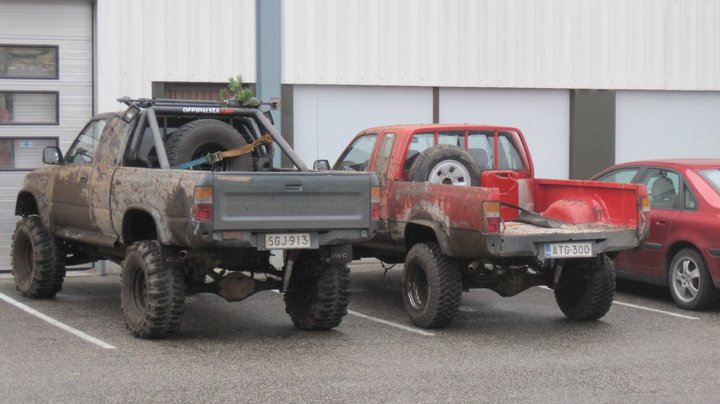 ![]() Kerrankin oli muita mönkkäreitä mukana, vähän mielekkäämpää ajella kun ei ihan yksin tarvi olla. Tuli sentään opittua että tarpeeksi tyhmä saa hajalle mitä vaan, tyttömönkkäristä petti isolohkon väännön alla etuvetarin ristikko pienessä jumitustilanteessa. Nyt on sitten huollon aika, kun kerta rikki meni.